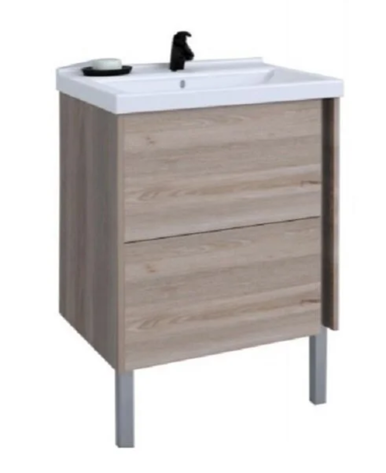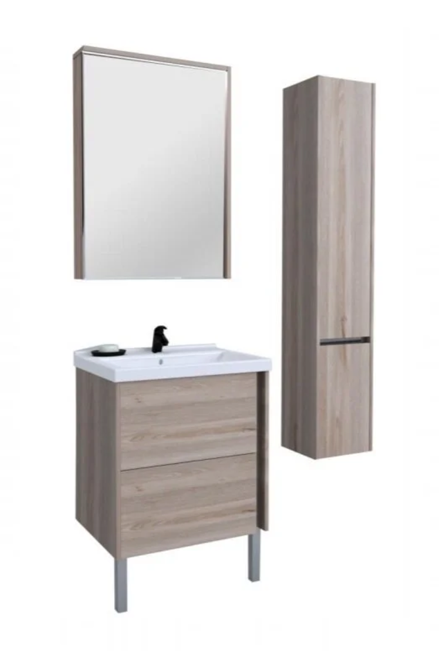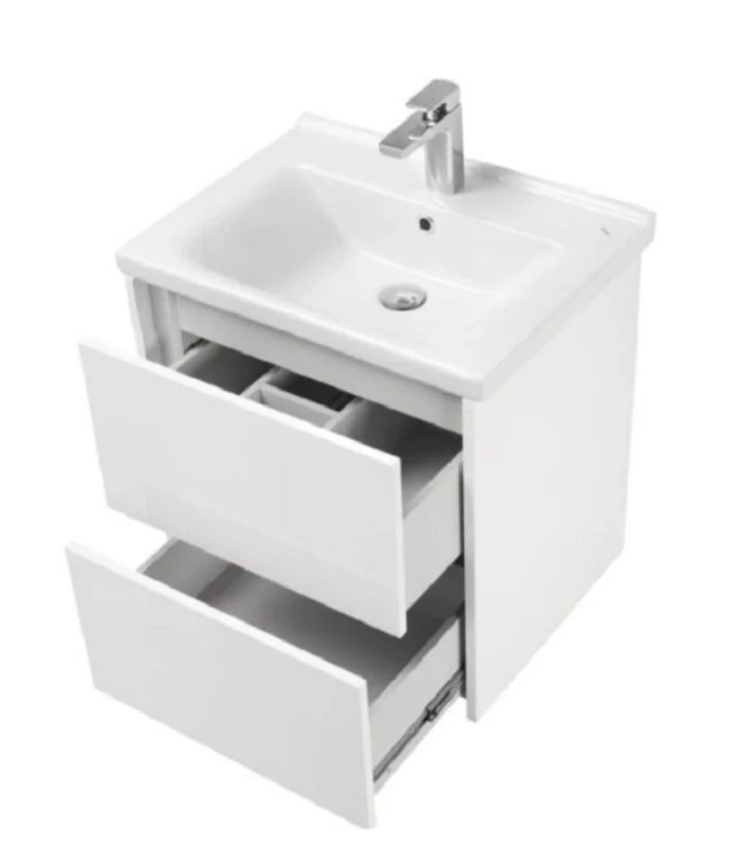 Тумба с раковиной Раковина Миранда 60 Монтаж: подвесной Размер: 56.5 x 44.2 x 60 см Ящики выдвижные: 2 С системой плавного закрывания Покрытие: краска Материал: ЛДСП, МДФ Форма: прямоугольная Цвет: сосна арлингтон