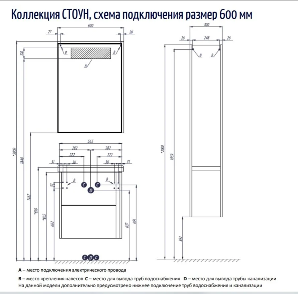 Тумба с раковиной Раковина Миранда 60 Монтаж: подвесной Размер: 56.5 x 44.2 x 60 см Ящики выдвижные: 2 С системой плавного закрывания Покрытие: краска Материал: ЛДСП, МДФ Форма: прямоугольная Цвет: грецкий орех