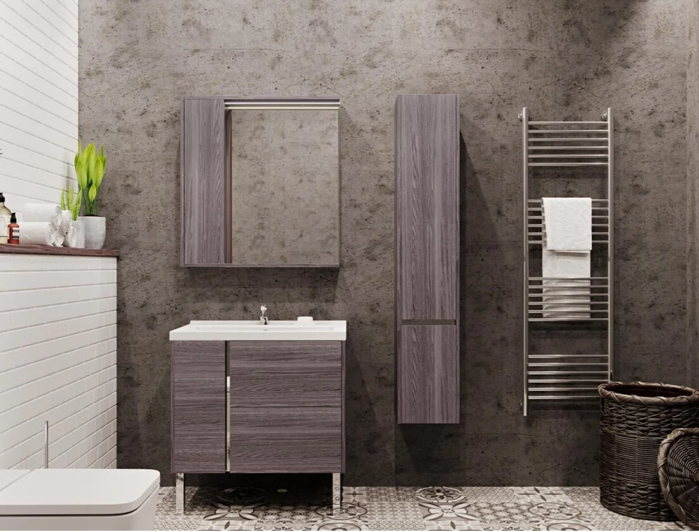 Тумба с раковиной Раковина Миранда 80 Монтаж: подвесной Размер: 76 x 44.2 x 60 см Ящики выдвижные: 2 С системой плавного закрывания Покрытие: краска Материал: ЛДСП, МДФ Форма: прямоугольная Цвет: грецкий орех