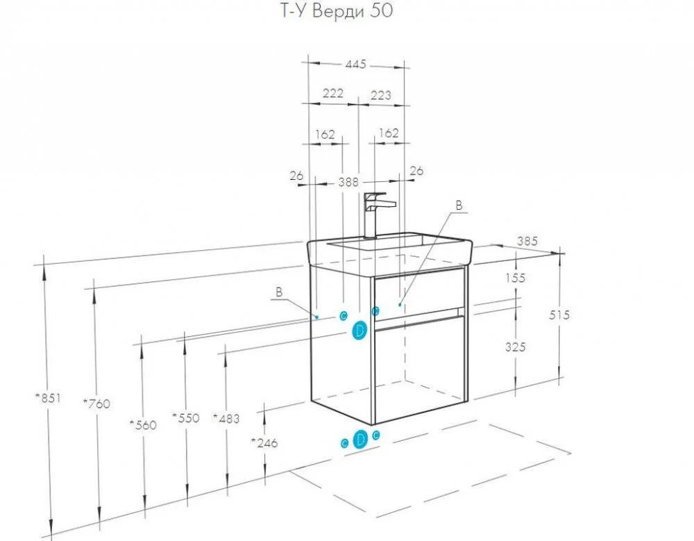 Тумба с раковиной Акватон Верди Pro 50 подвесная, белый, ясень фабрик, 1A1959K1VDAV0