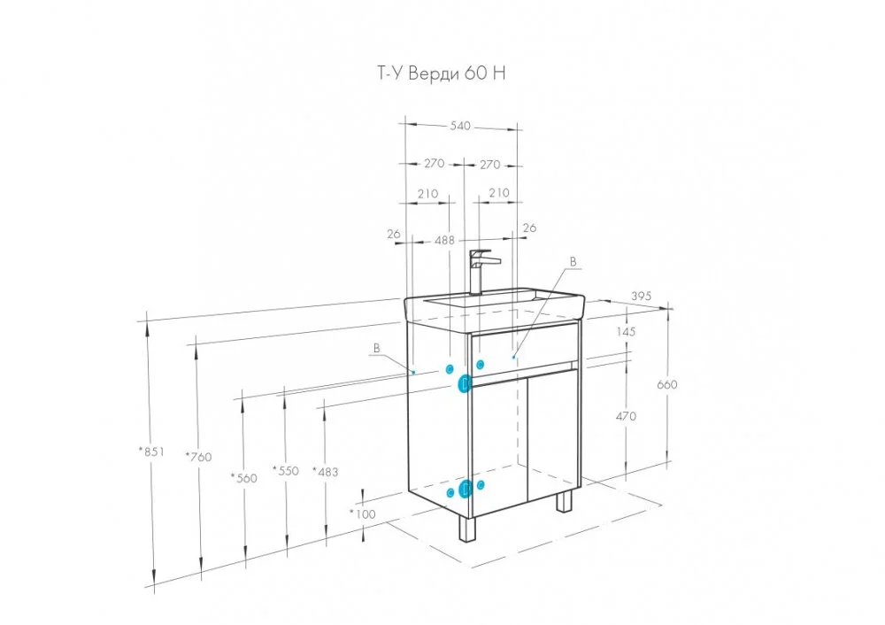 Тумба с раковиной Акватон Верди PRO Н 60 см напольная, белый, ясень фабрик, 1A2077K1VDAV0