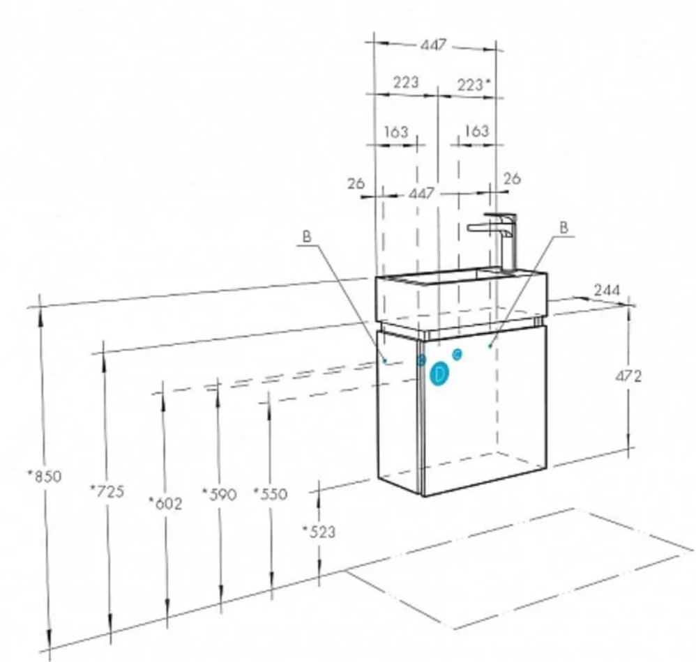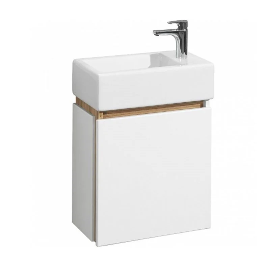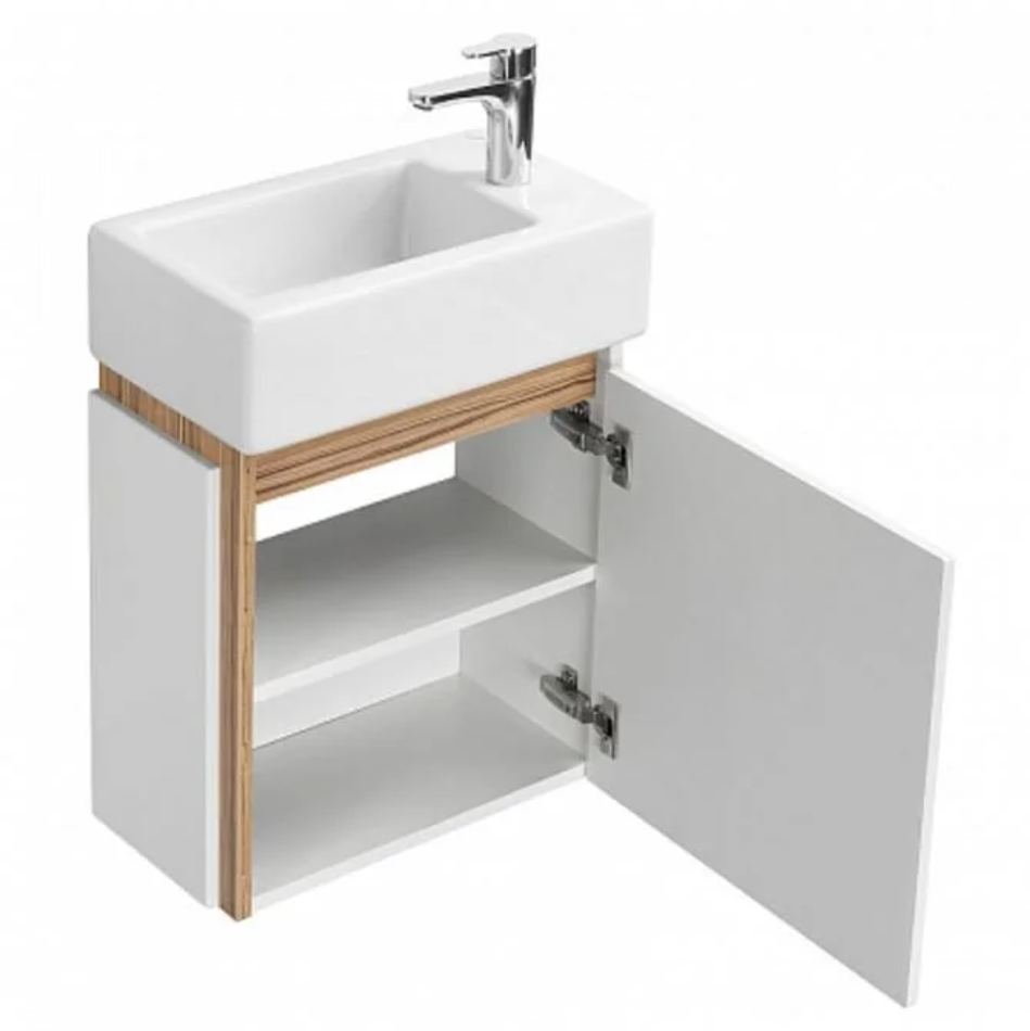 Тумба с раковиной Акватон Эклипс 45 см, подвесная, отверстие под смеситель справа, белый/эбони светлый, 1A1728K1EK49R