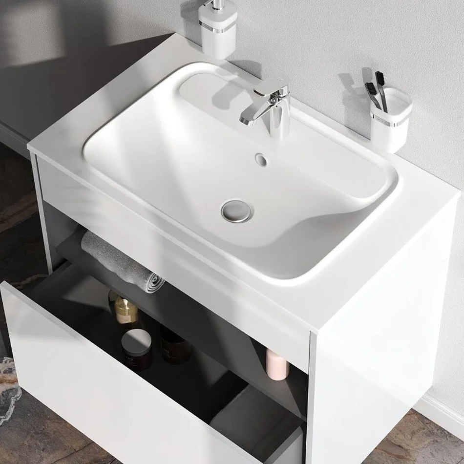Тумба с раковиной Am.Pm Func M8F-FUX0801WG-WPC0800WM, 80 см, подвесная/напольная, белая