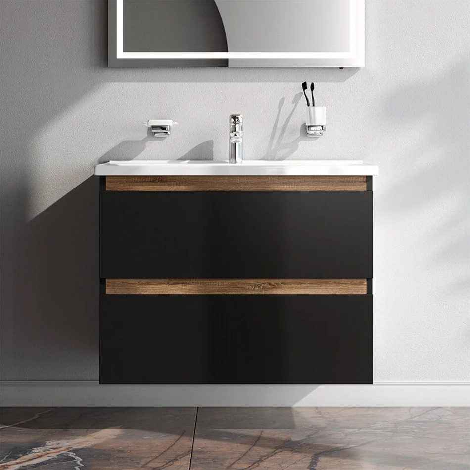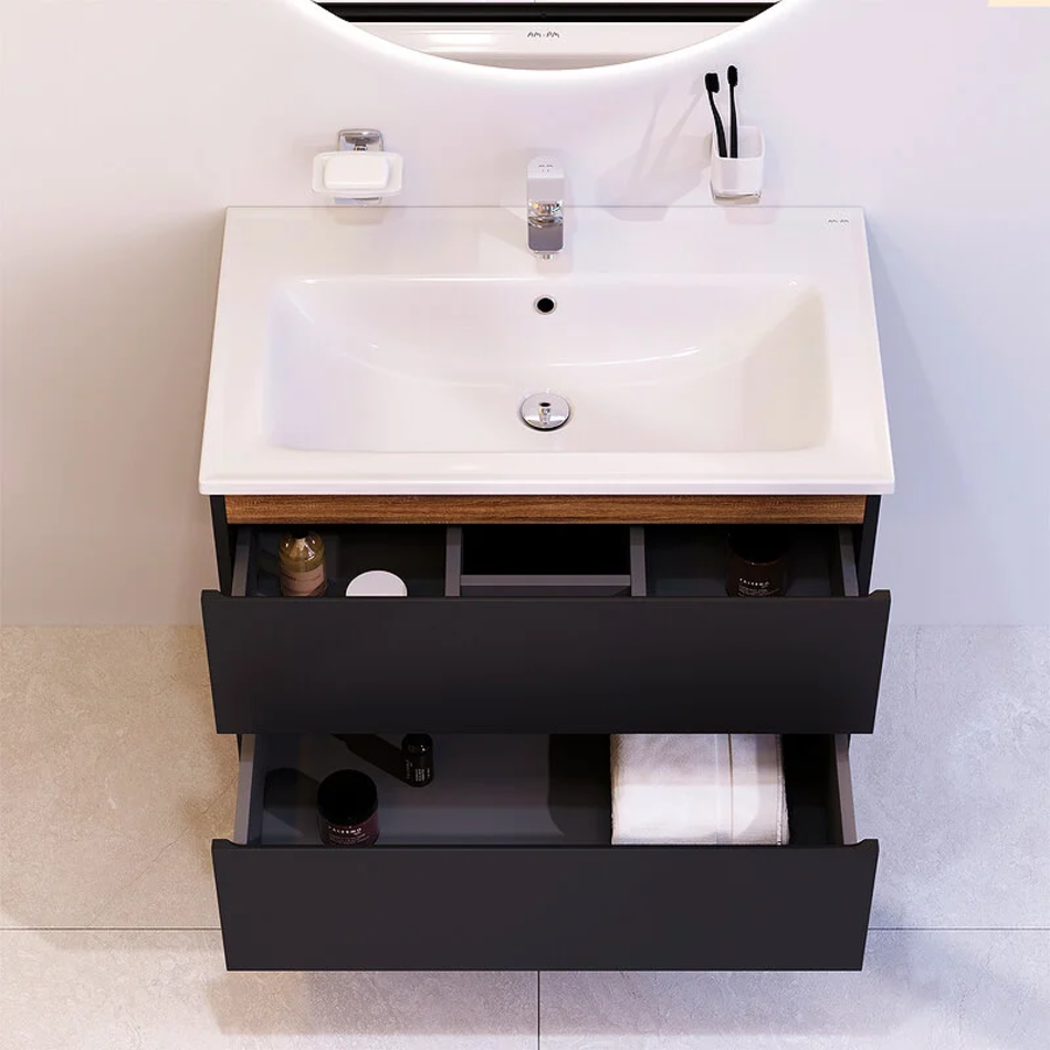 Тумба с раковиной Am.Pm X-Joy M85-FHX0802BM-WCC0802WG, 80 см, подвесная, черная матовая
