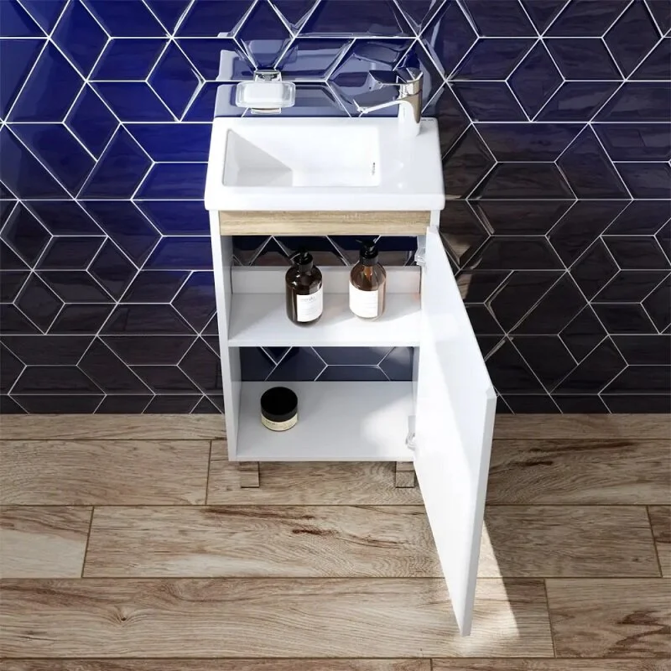 Впервые на рынке – дизайнерская коллекция сантехники которую может позволит себе каждый. Самое эстетичное сочетание цветов и фактур от дизайн-бюро Danelon Meroni (Великобритания & Италия): белые глянцевые фасады дополнены отделкой под светлое дерево. Функциональный органайзер в первом ящике позволит хранить необходимые косметические средства под рукой и в полном порядке. Внутреннее покрытие каждого ящика выполнено в современном цвете Anthracite и имеет противоскользящее покрытие. Встроенная керамическая раковина белоснежного цвета оснащена специальным бортиком для защиты от пролива воды за мебель.Экологически чистые и удивительно долговечные полиакриловые эмали – специальная технология покраски в 7 слоев превосходит технологию нанесения автоэмали у ведущих немецких марок и обеспечивает насыщенный цвет в течение всего срока службы (от 10 лет). Боковины базы выполнены из влагостойкой ЛДСП что позволяет продлевать срок службы мебели до максимального в индустрии.