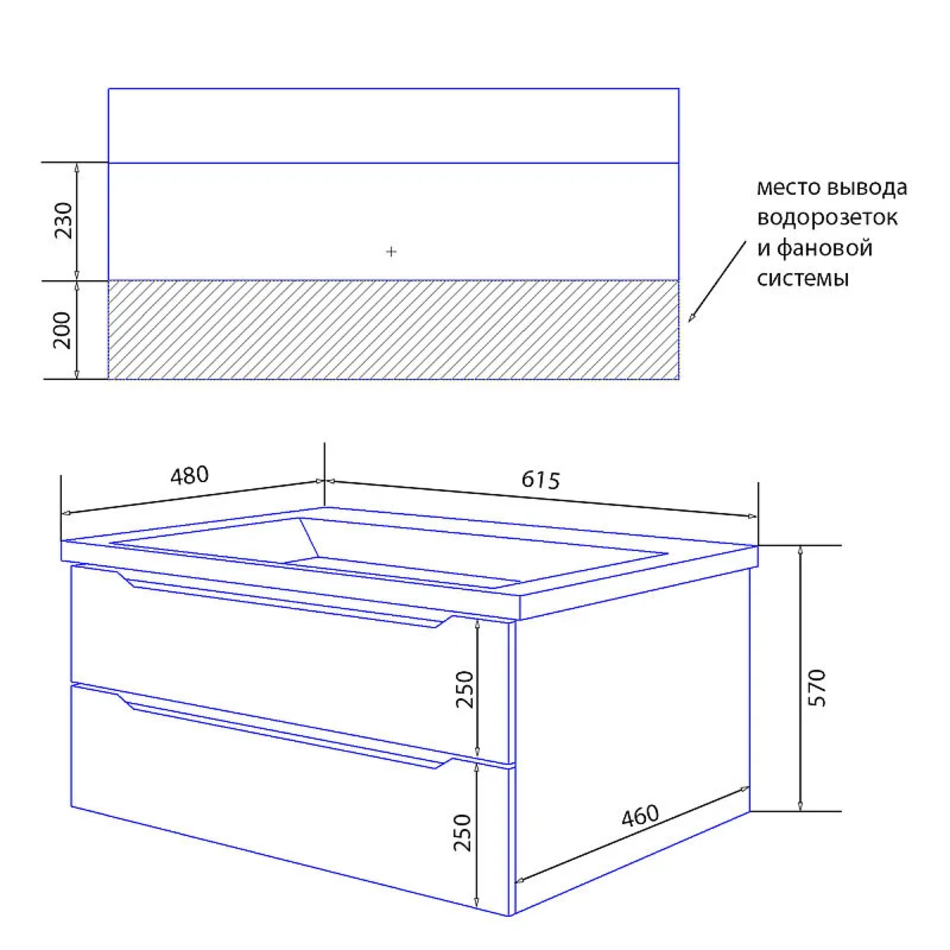 Тумба подвесная с раковиной Monte 60