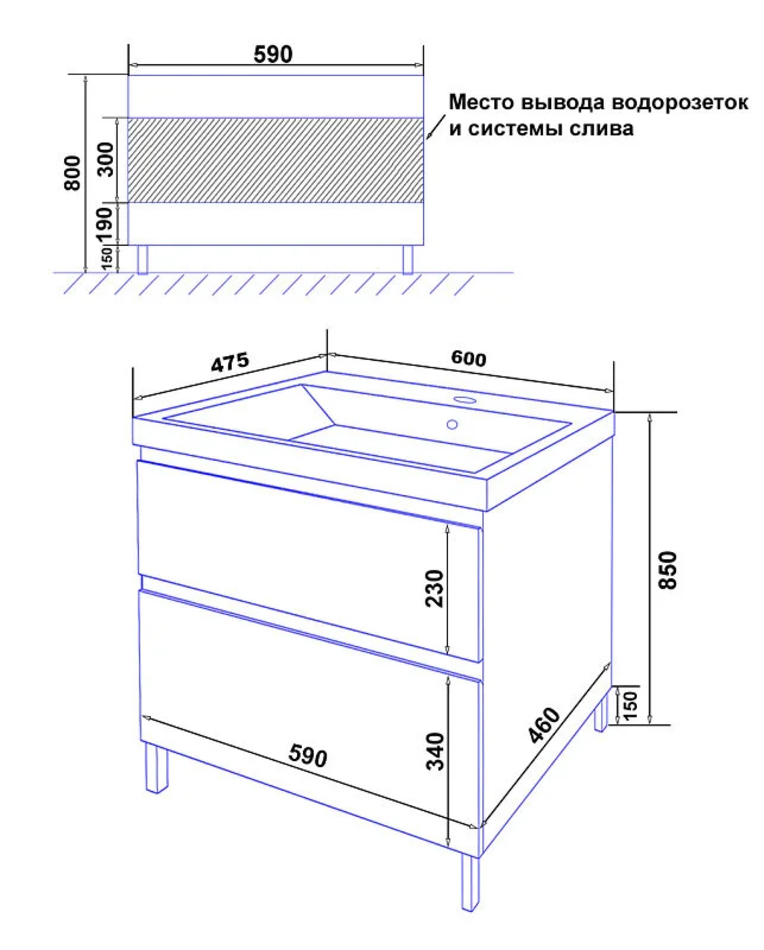 Тумба с раковиной Azario Мила Н CS00085830, 60 см, напольная, белая матовая