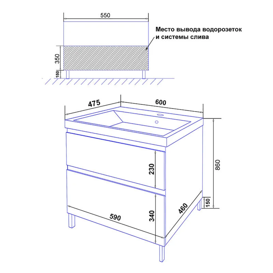 Тумба с раковиной Azario Мила Н CS00091364, 60 см, напольная, белая матовая