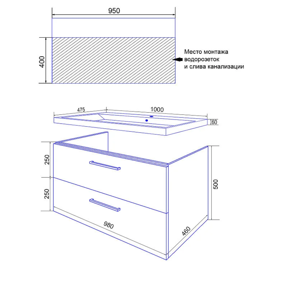 Тумба с раковиной Azario Ника CS00089923, 100 см, подвесная, белая