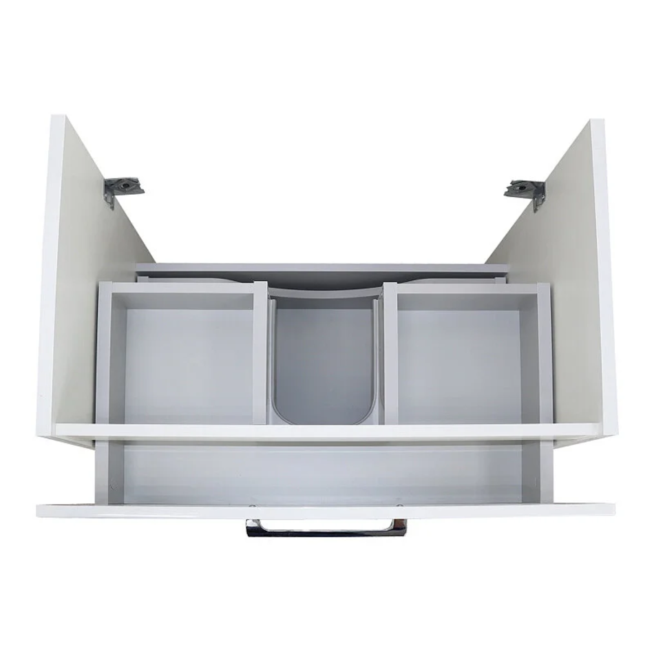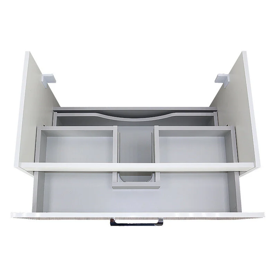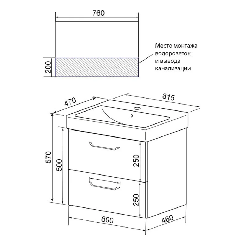 Тумба с 2 выдвижными ящиками. Тумба комплектуется направляющими скрытого монтажа с доводчиками Hettich. Внутренние ящики серого цвета. Бока тумбы изготовлены из ВЛДСП, фасад – МДФ. Бока тумбы и фасад крашеные ( глянец). Комплектуется умывальником.
