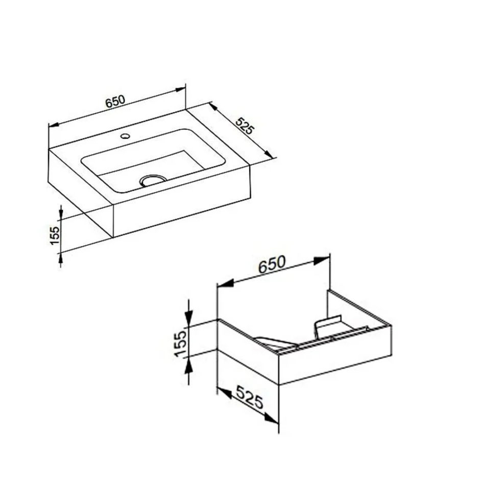 Размер, мм.: Тумба: 650x155x525; раковина: 650x155x525