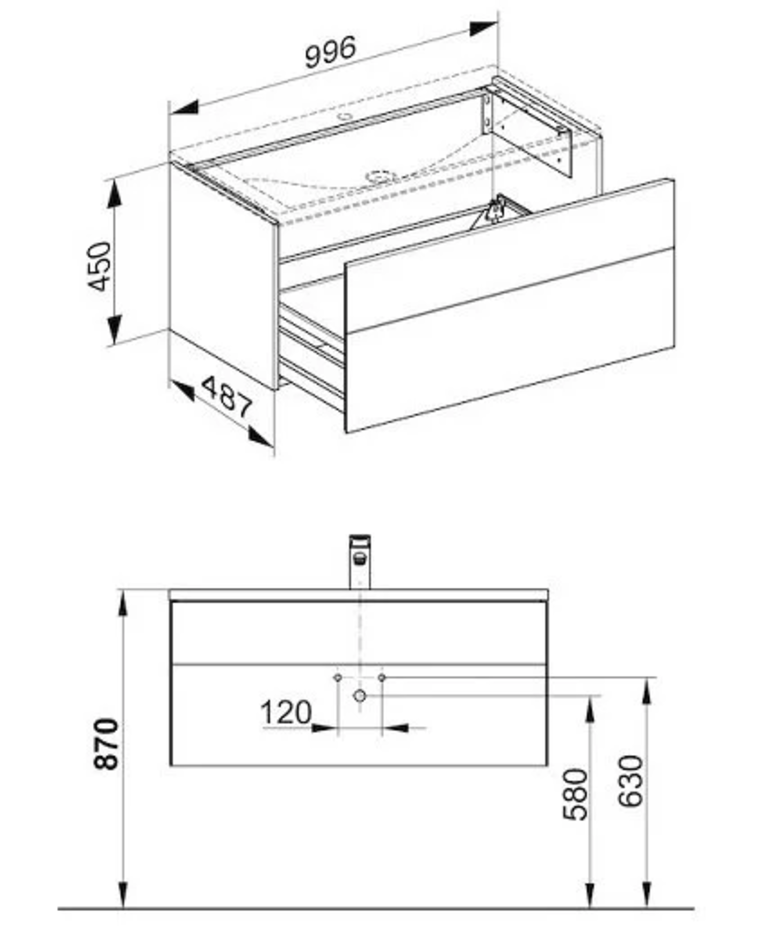 Тумба с раковиной Keuco Royal Reflex 100 см подвесная, белый, 39604210100