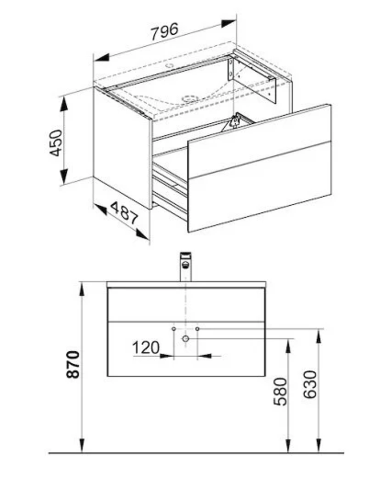 Размер с раковиной: 80 x 49 x 48 см