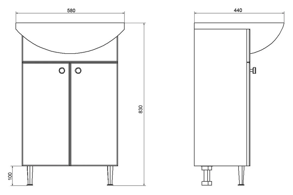 Тумба с раковиной Loranto Моника New 55 см напольная, раковина Basic 55, белый, CS00071365