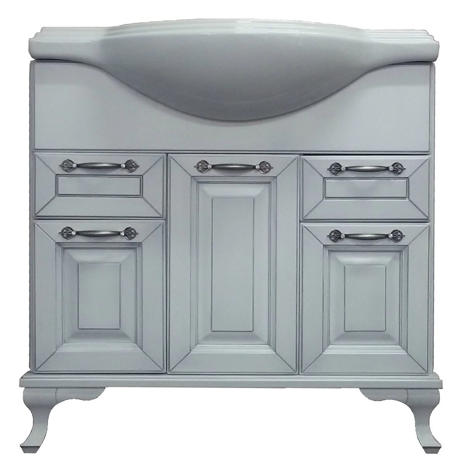 Тумба с раковиной Loranto Пандора 80 см напольная, раковина Классик 80, массив, белое серебро, 561738.01.011