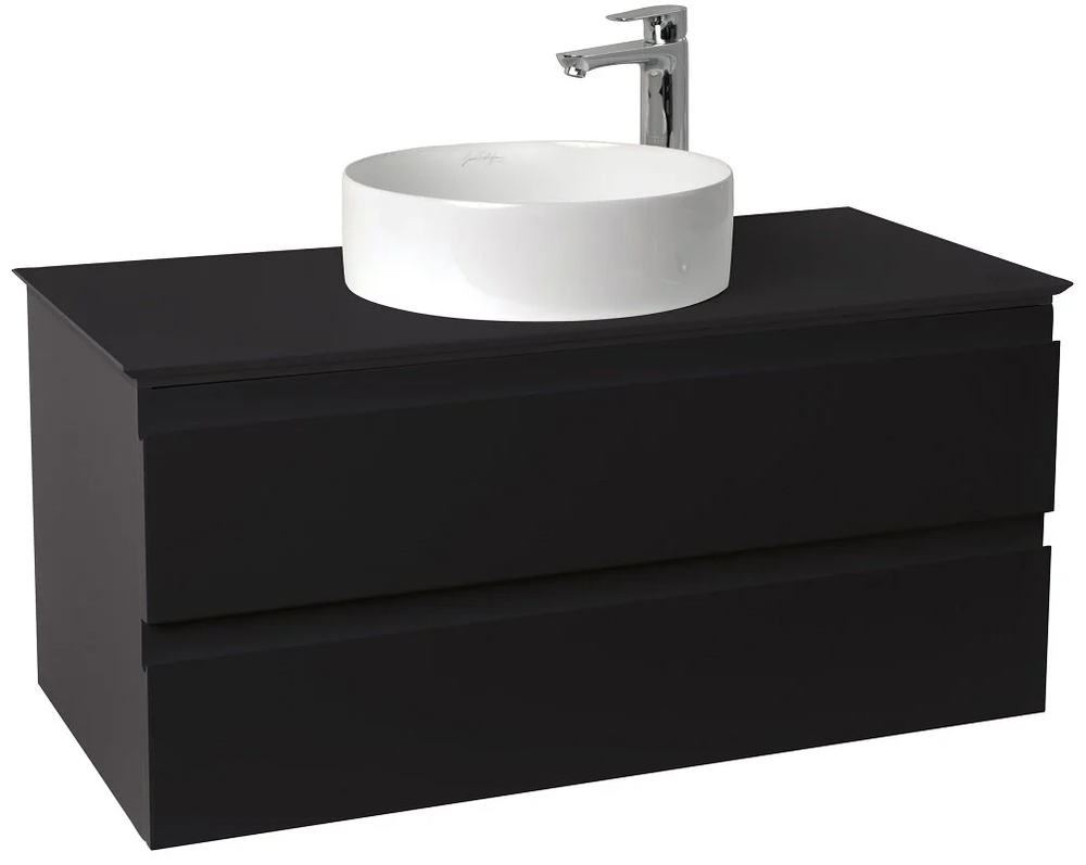 Тумба со столешницей под раковину Jacob Delafon Madeleine, 100 см, со светодиодной подсветкой, черный матовый лак, EB2084-J53