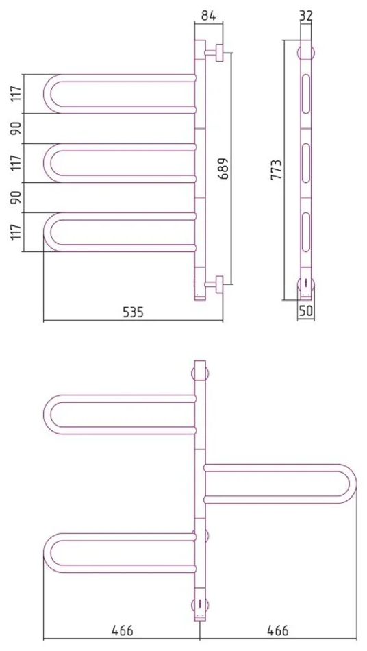 Полотенцесушитель электрический Сунержа Парео 4.0, ширина 55 см высота 80 см, 3 поворотные секции, хром, 00-0823-0773