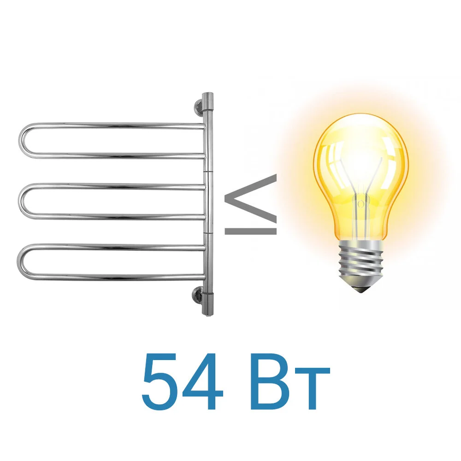 Energy U chrome G3 - электрический полотенцесушитель с тремя U-образными поворотными греющими секциями низкого энергопотребления - 15 Вт на секцию. Предназначен для эффективной просушки изделий из ткани — полотенец, банных халатов и других, а также для дополнительного обогрева ванных комнат, душевых, санузлов и просушки вещей из ткани. Произведён из высококачественной пищевой нержавеющей стали.