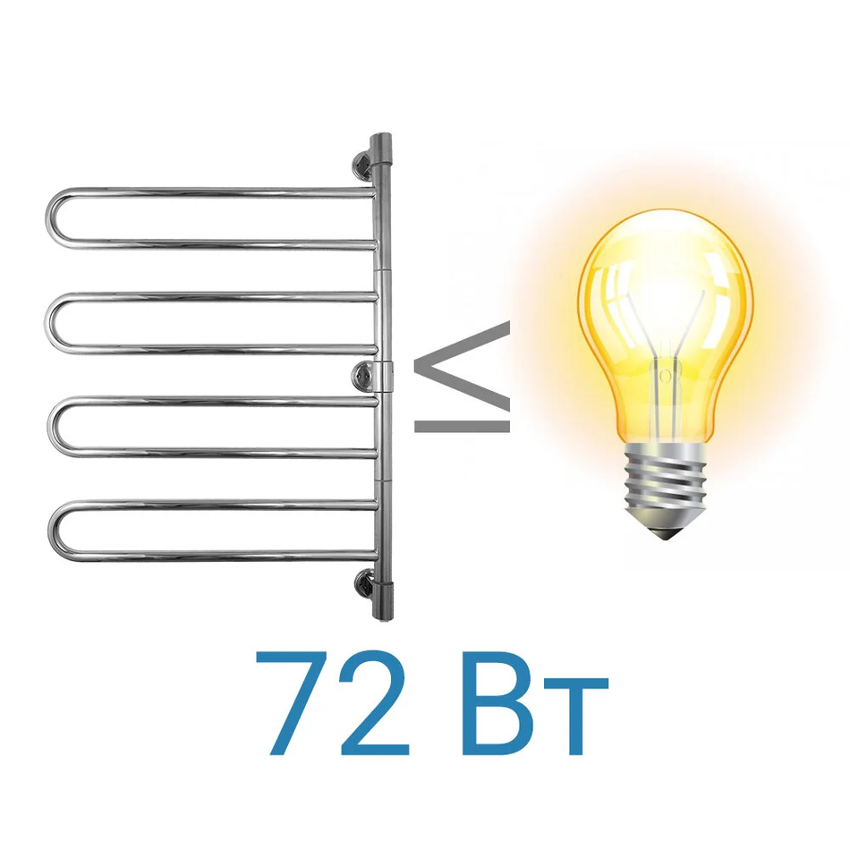Energy U chrome G4 - электрический полотенцесушитель с четырьмя U-образными поворотными греющими секциями низкого энергопотребления - 15 Вт на секцию. Предназначен для эффективной просушки изделий из ткани — полотенец, банных халатов и других, а также для дополнительного обогрева ванных комнат, душевых, санузлов и просушки вещей из ткани. Произведён из высококачественной пищевой нержавеющей стали.