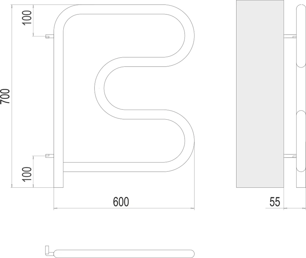 Полотенцесушитель электрический Terminus F-образный, 4620768883897, ширина 60 см, высота 70 см, поворотный, цвет хром