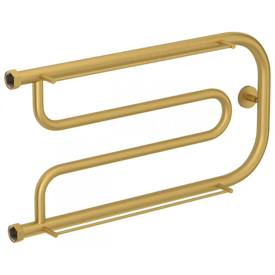 Полотенцесушитель водяной Сунержа Гусли+, высота 32 см, ширина 65 см, боковое подключение 32 см, с 2 полками, цвет матовое золото, 032-4010-3265