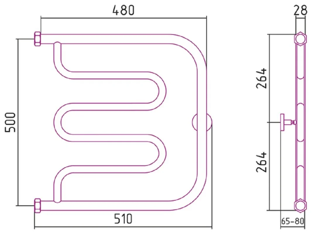 - Полотенцесушитель упакован в полиэтиленовый пакет и коробку из гофрокартона.