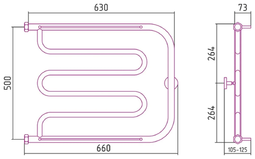 Полотенцесушитель водяной Сунержа Лира 50 x 65 см, с 2-мя полками, 00-0012-5065, хром