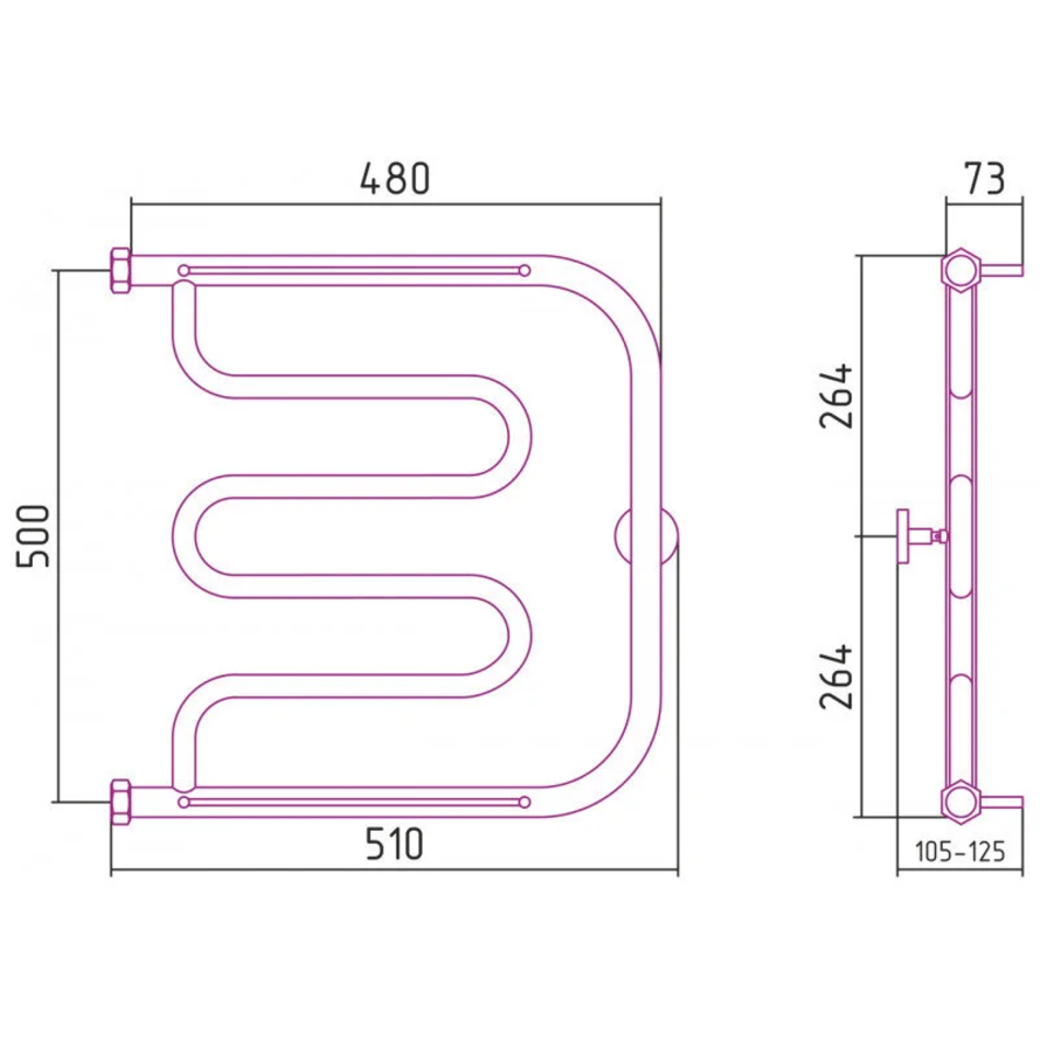 Полотенцесушитель водяной Сунержа Лира+, высота 50 см, ширина 50 см, боковое подключение 50 см, с 2 полками, цвет золото, 03-4012-5050