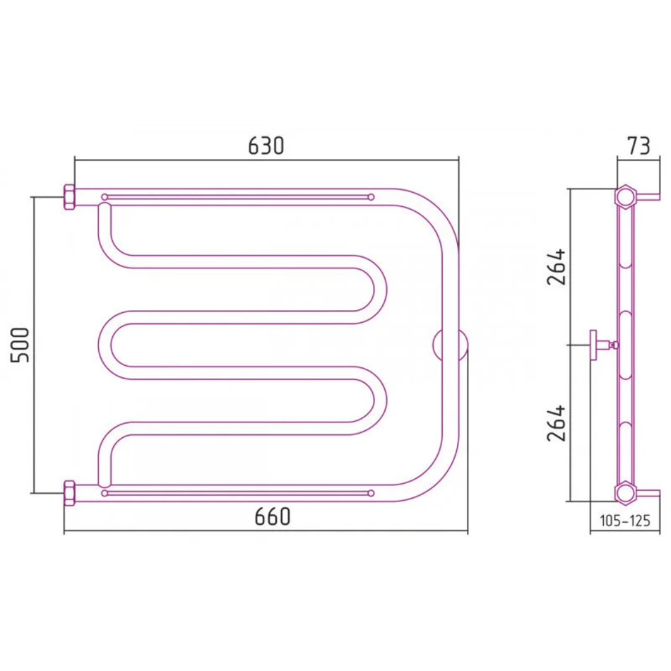 Полотенцесушитель водяной Сунержа Лира+, высота 50 см, ширина 65 см, боковое подключение 50 см, цвет шампань, 020-4012-5065