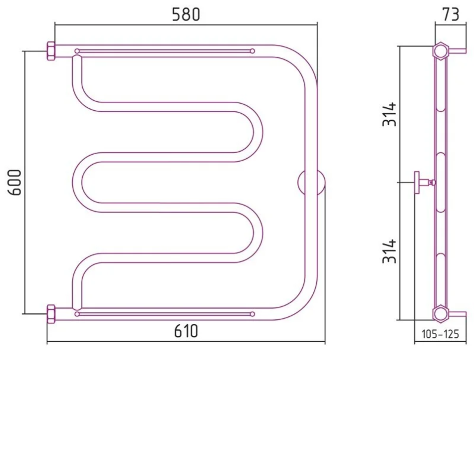 Полотенцесушитель водяной Сунержа Лира+, высота 60 см, ширина 60 см, боковое подключение 60 см, 2 полки, цвет хром, 00-4012-6060