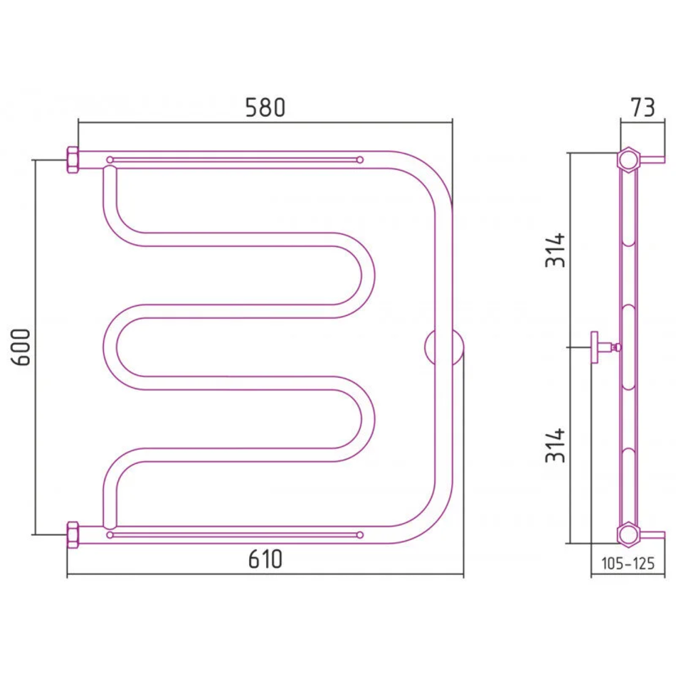 Полотенцесушитель водяной Сунержа Лира+, высота 60 см, ширина 60 см, боковое подключение 60 см, цвет шампань, 020-4012-6060