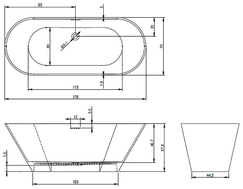 Овальная ванна из искусственного камня Riho Barcelona 170 х 70 см, белая