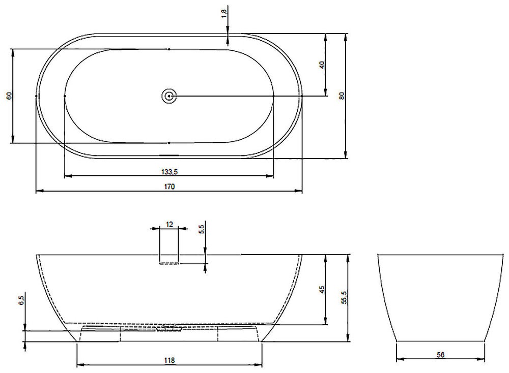 Овальная ванна из искусственного камня Riho Bilbao, 170 x 80 см, белая B118001105