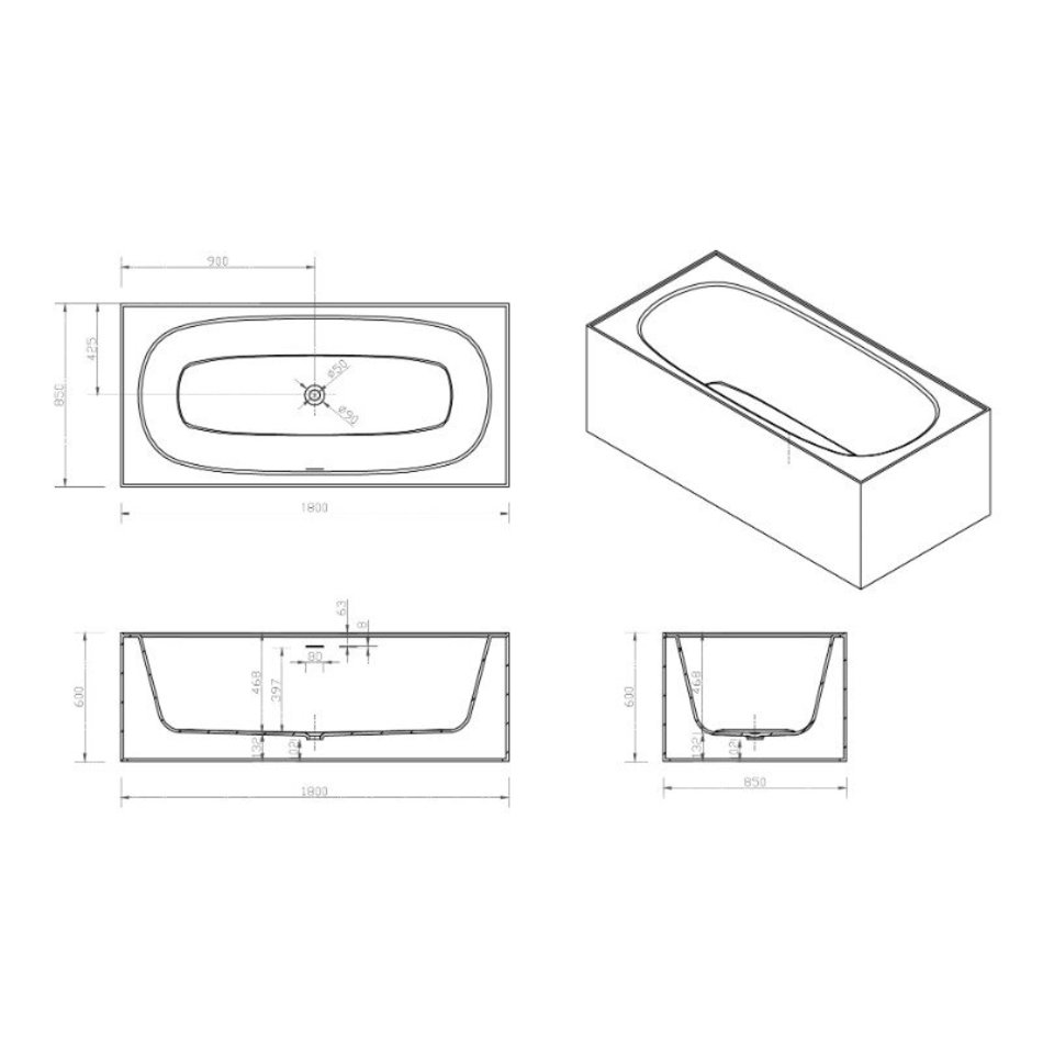 Ванна Abber Blitz из искусственного камня 180 х 85 см, белая, AS9501GB