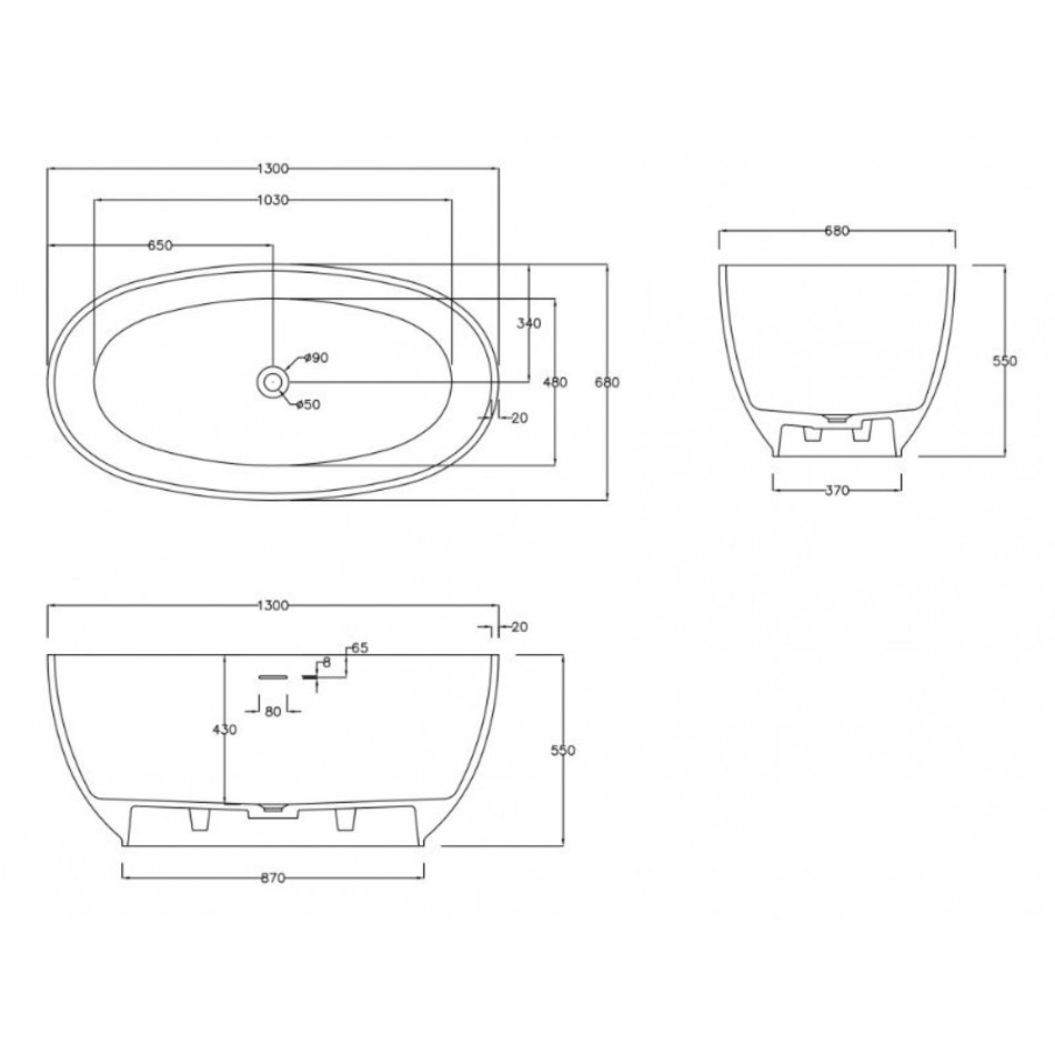 Ванна Abber Stein из искусственного камня 130 х 68 см, белая матовая, AS9641-1.3