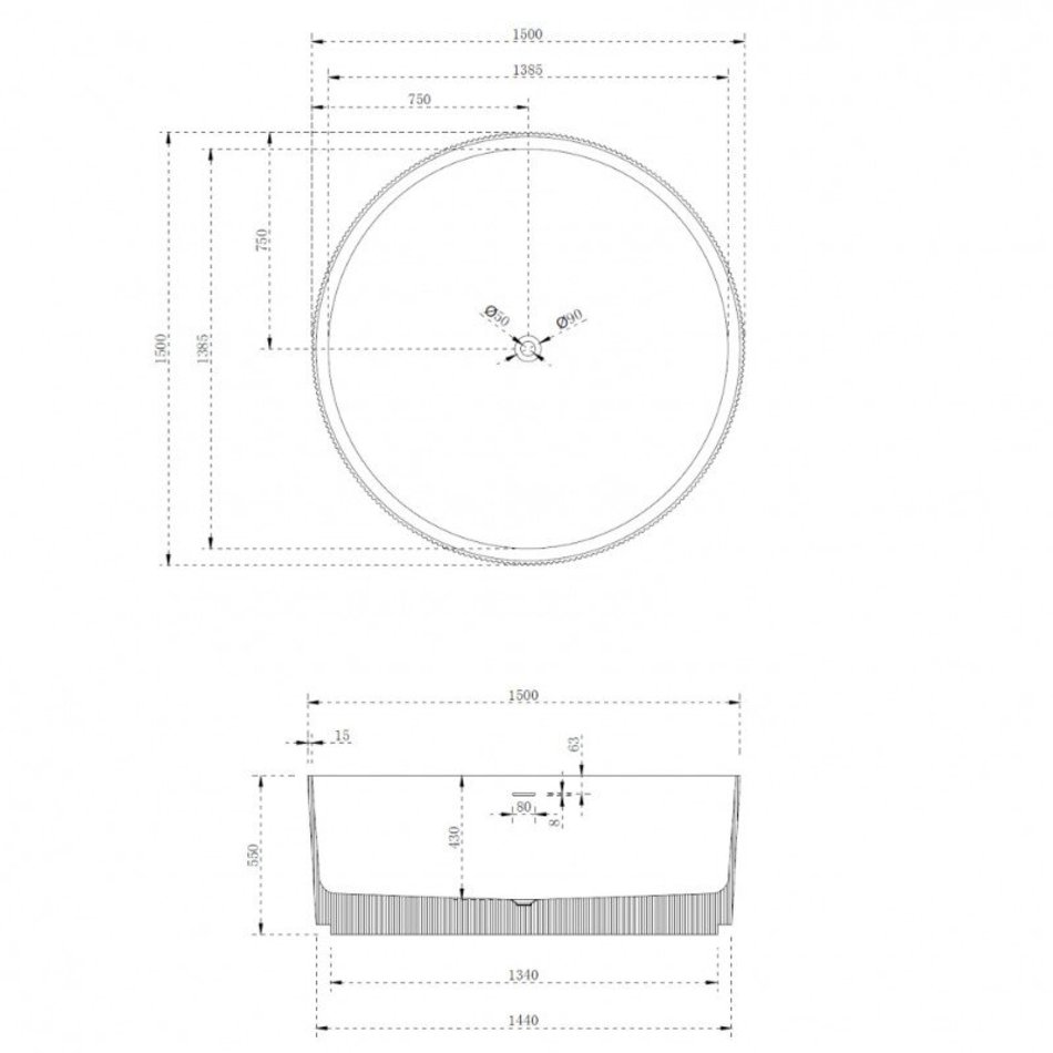 Ванна Abber Stein из искусственного камня 150 х 150 см, белая матовая, AS9679