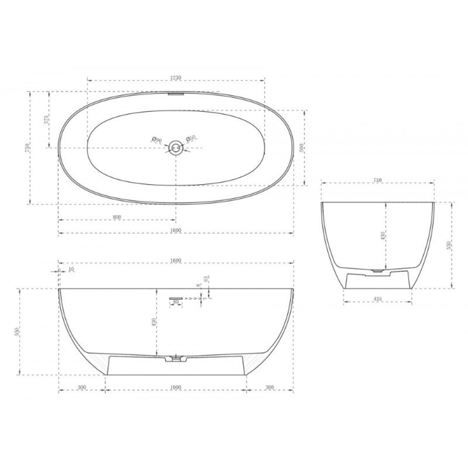 Ванна Abber Stein из искусственного камня 160 х 75 см, белая матовая, AS9624-1.6
