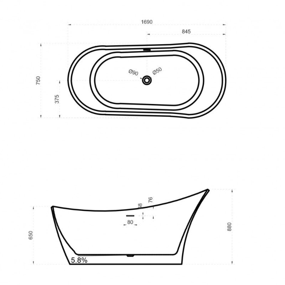 Ванна Abber Stein из искусственного камня 169 х 75 см, белая матовая, AS9618
