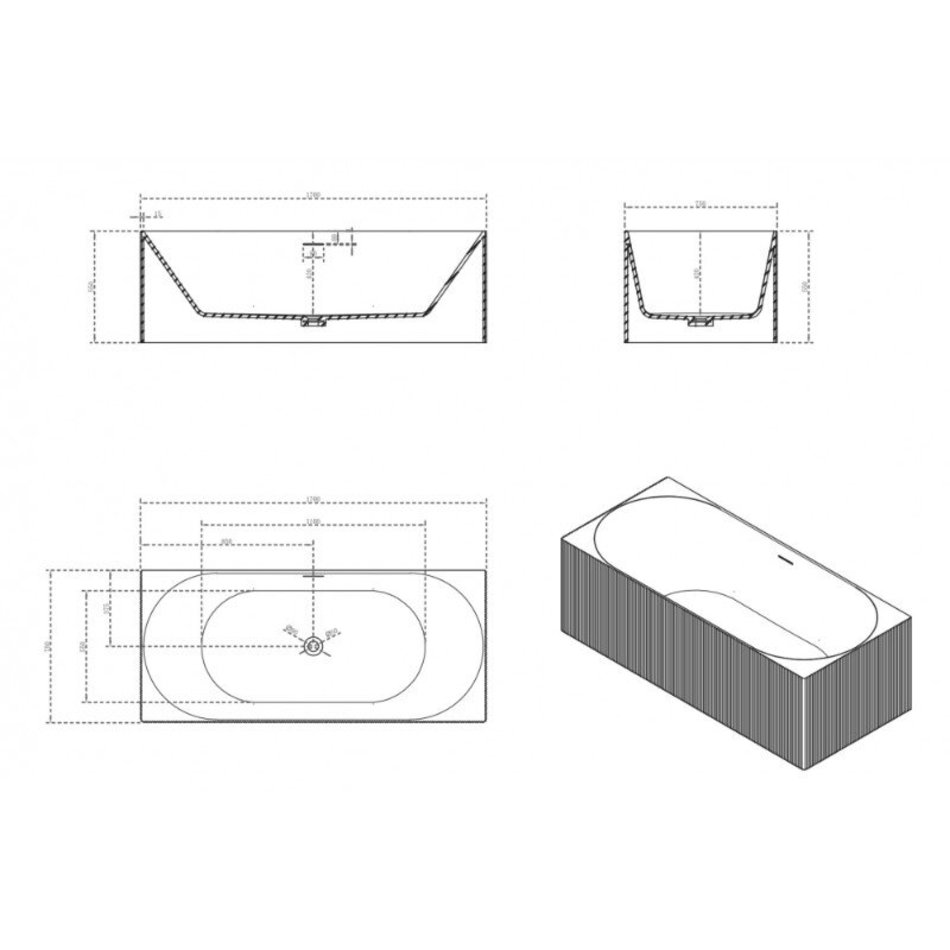 Ванна Abber Stein из искусственного камня 170 х 75 см, белая матовая, AS9603