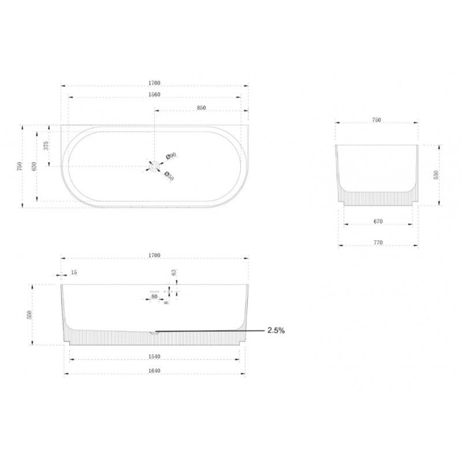 Ванна Abber Stein из искусственного камня 170 х 75 см, белая матовая, AS9630