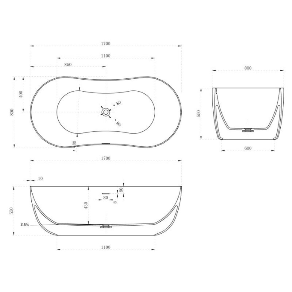 Ванна Abber Stein из искусственного камня 170 х 80 см, белая матовая, AS9604