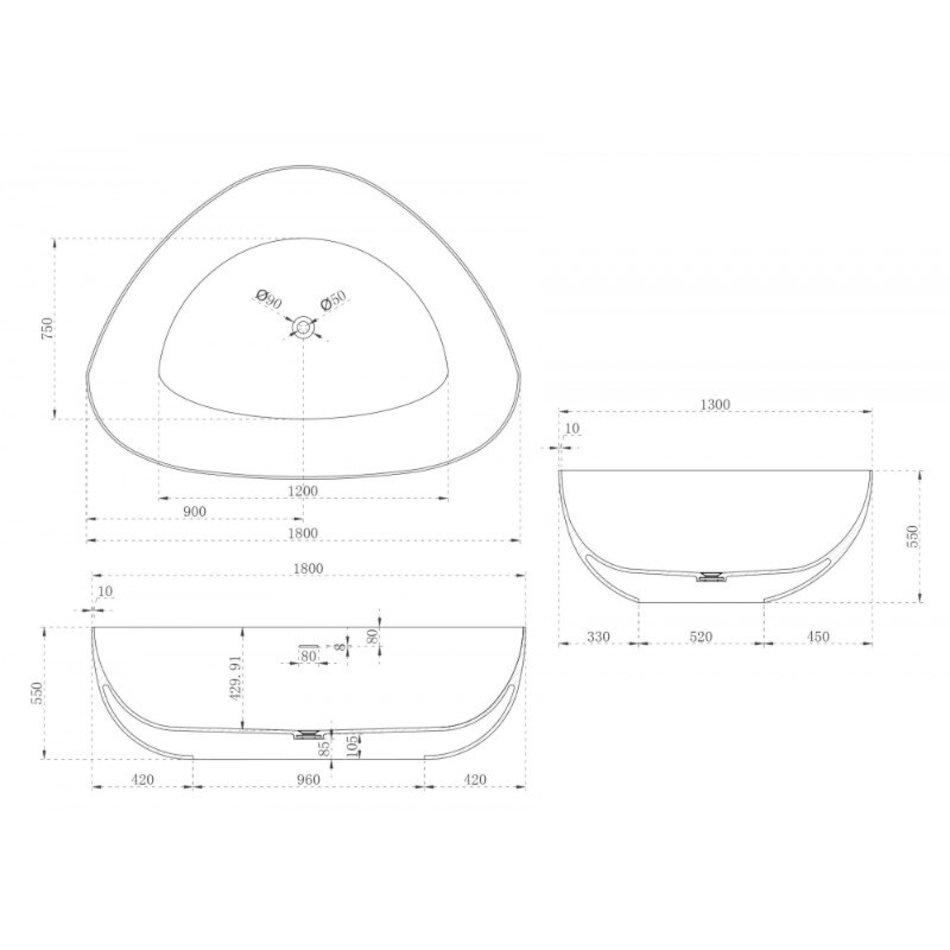 Ванна Abber Stein из искусственного камня 180 х 130 см, белая матовая, AS9608