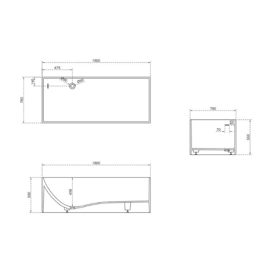 Ванна Abber Stein из искусственного камня, 180 х 76 см, белая матовая, AS9642-1.8