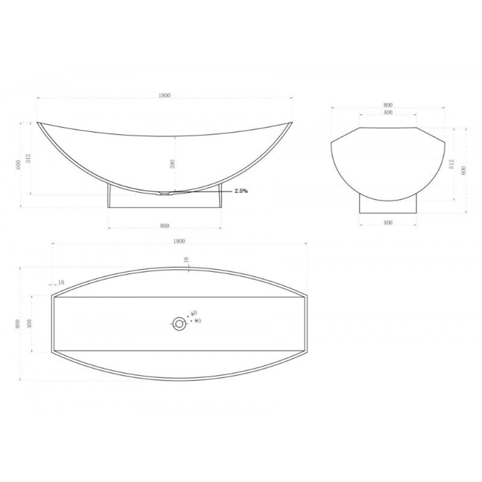 Ванна Abber Stein из искусственного камня 180 х 80 см, белая матовая, AS9610
