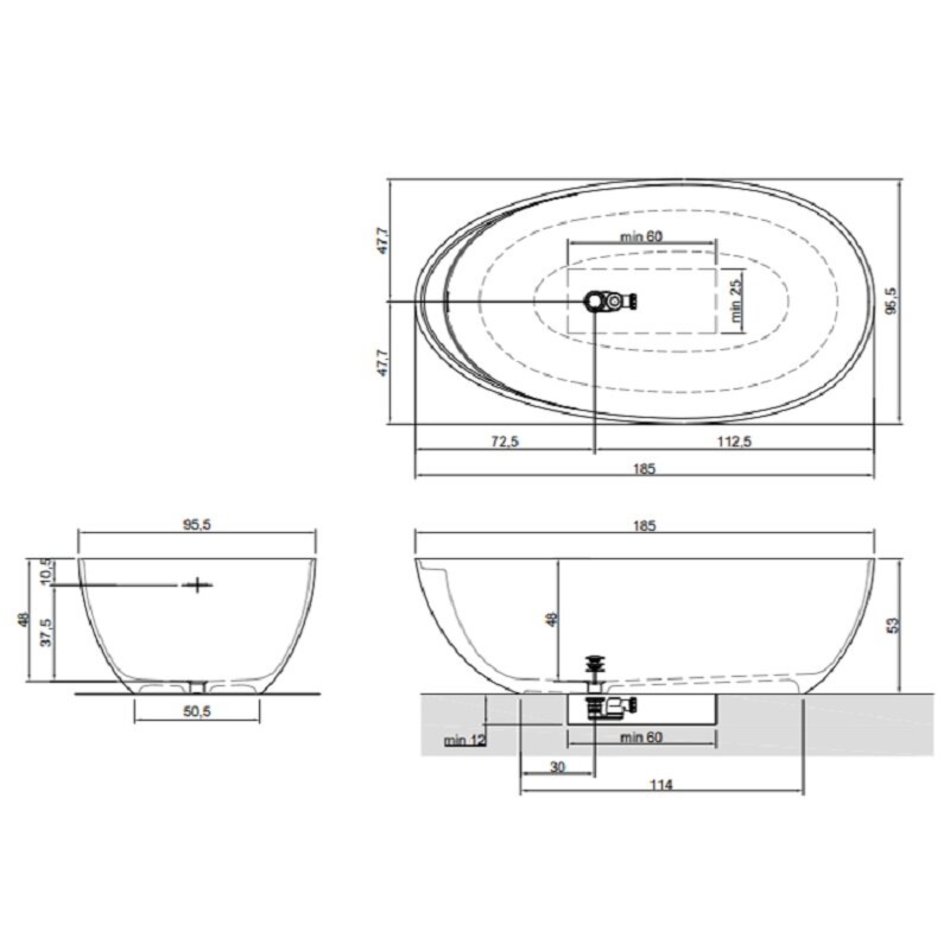 Ванна Antonio Lupi Eclipse 185 х 95,5 х 53 см отдельностоящая, овальная