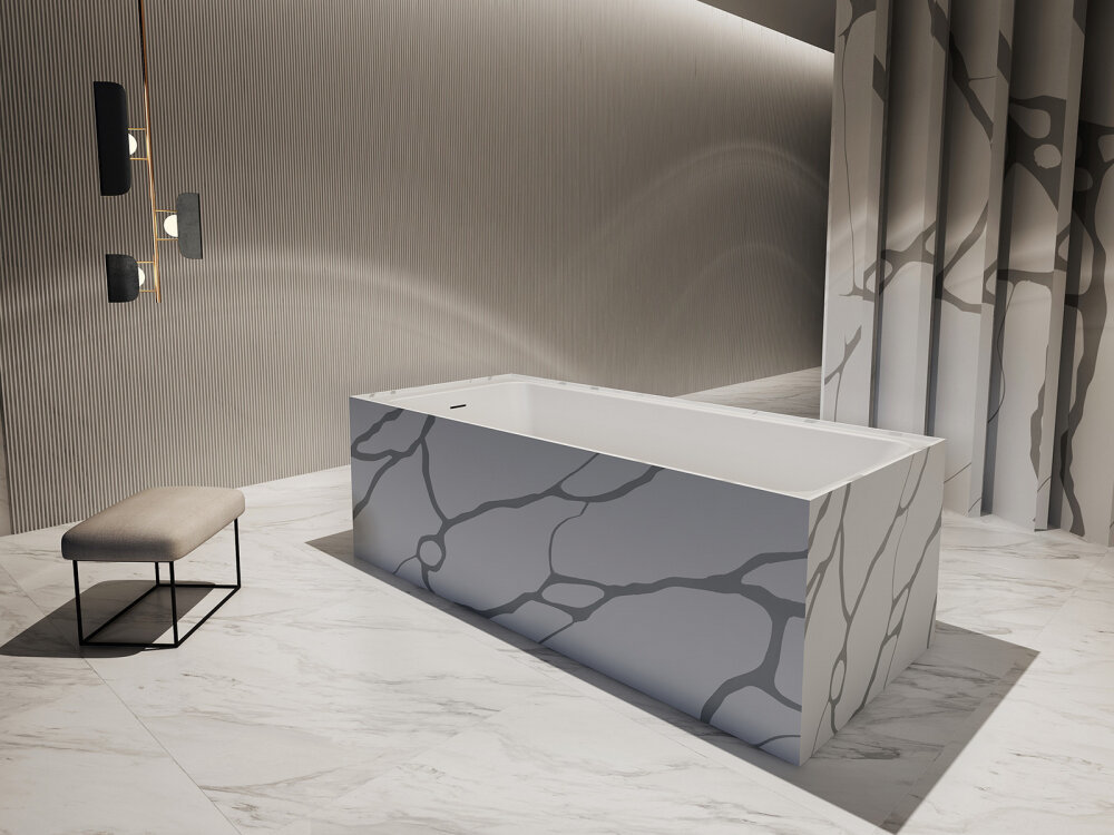 Ванна из искусственного камня Abber Blitz 180 x 85 см отдельностоящая, белый мрамор, AS9502GB