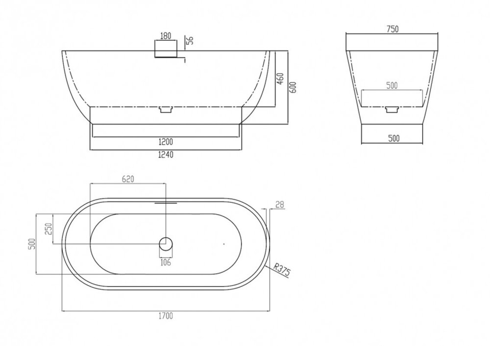 Ванна из искусственного камня Abber Frankfurt 170 x 75 см отдельностоящая, серый матовый, AM9941G
