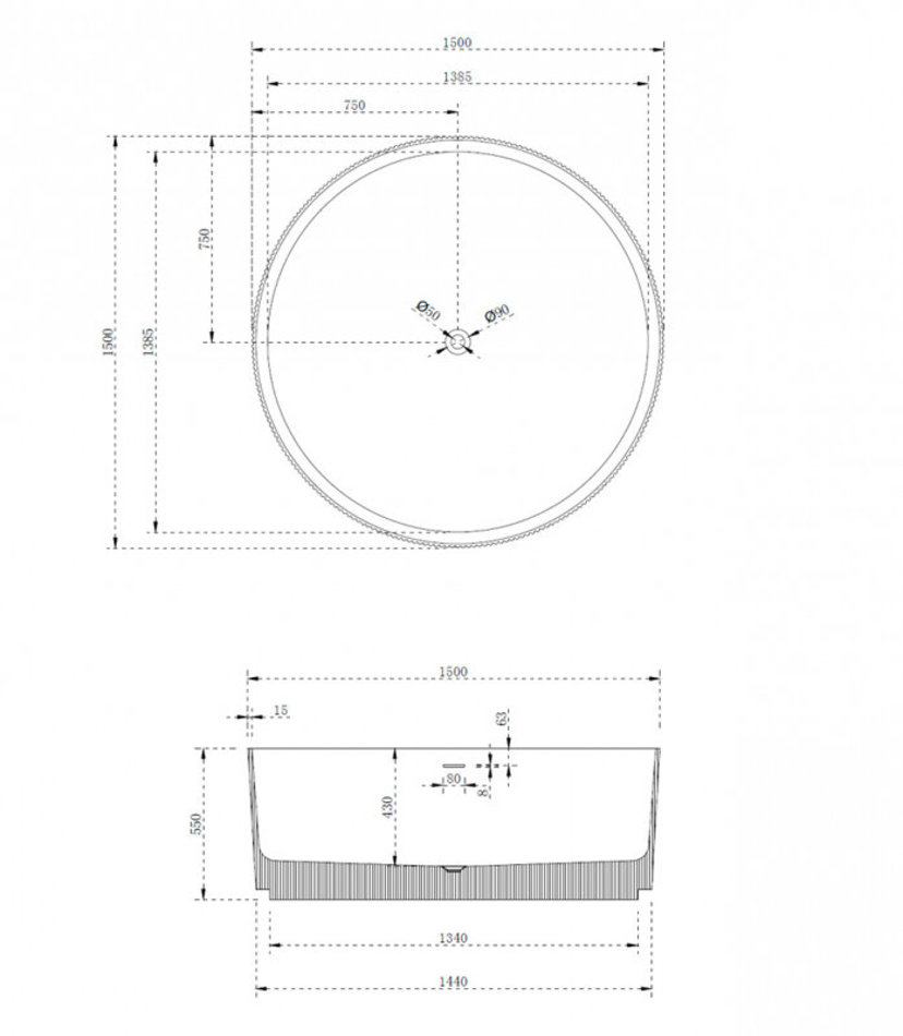 Ванна из искусственного камня Abber Stein 150 x 150 см отдельностоящая, голубая, AS9679Blau