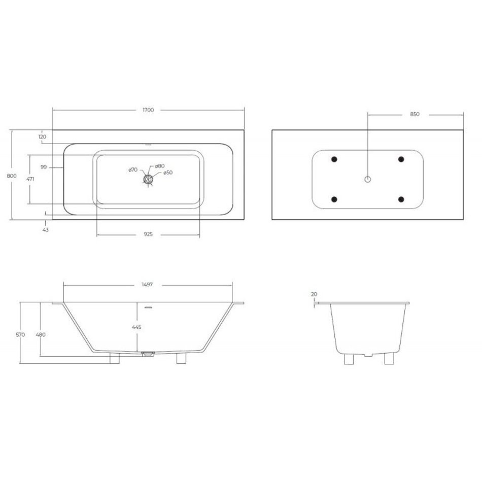 Ванна из искусственного камня Cezares Slider CZR-SLIDER-170-80-57-SSB, 170 x 80 см, цвет белый матовый