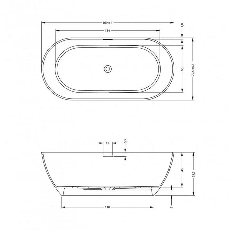 Ванна из искусственного камня Riho Bilbao, B118001106, 170 x 80 см, цвет серая галька